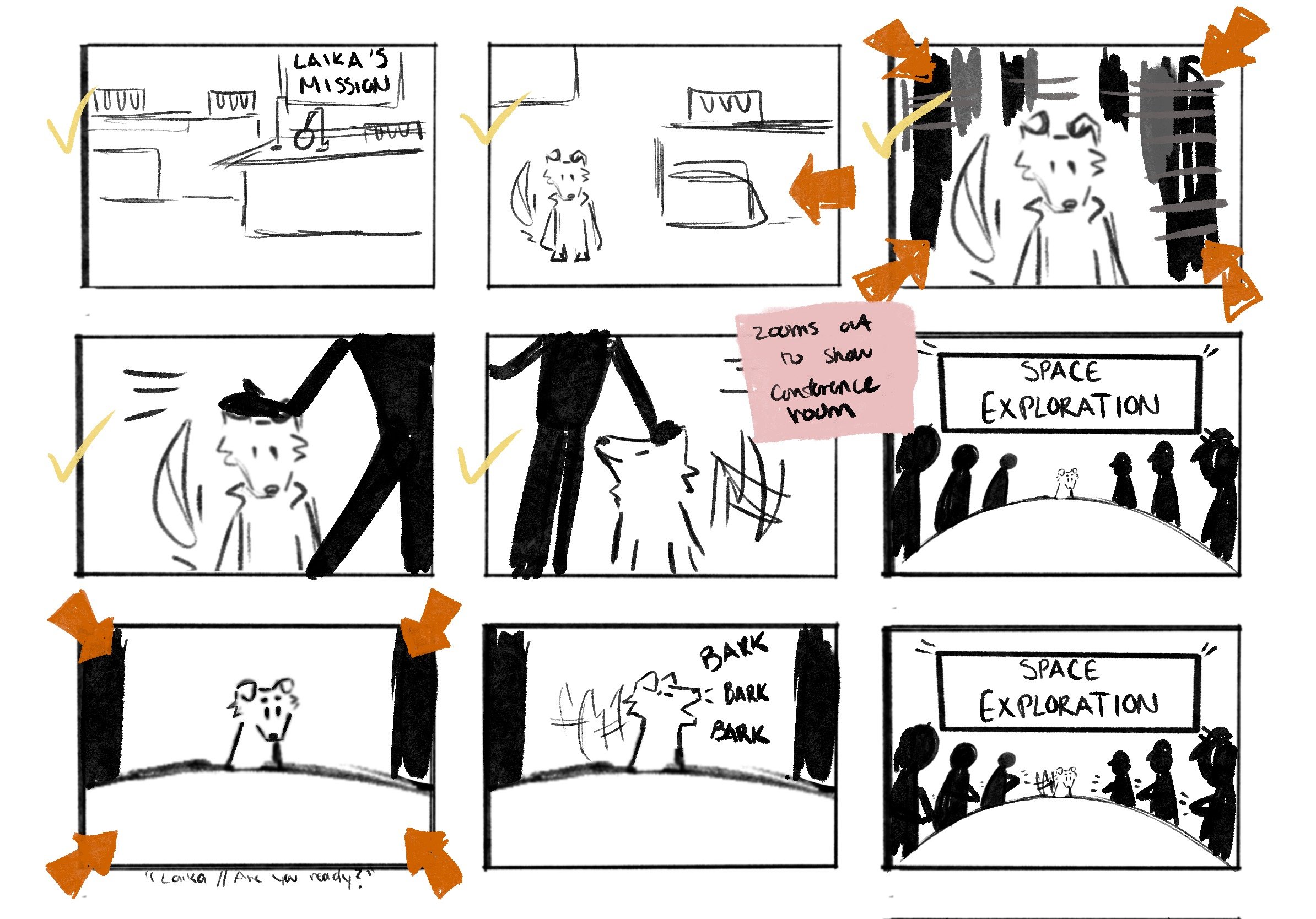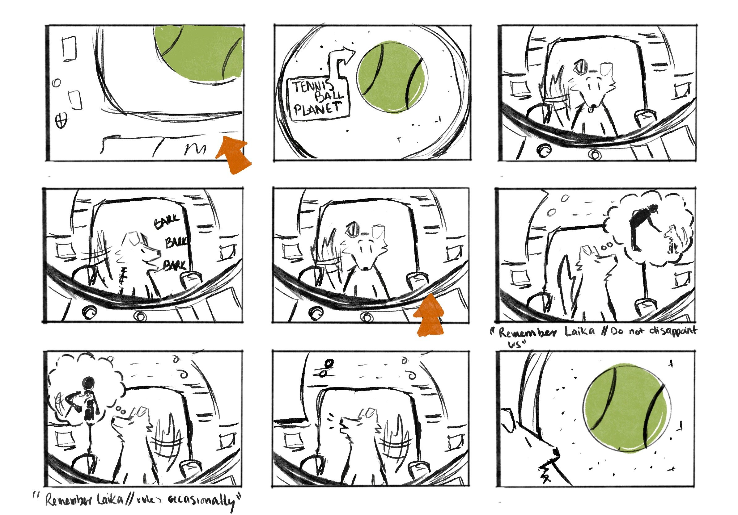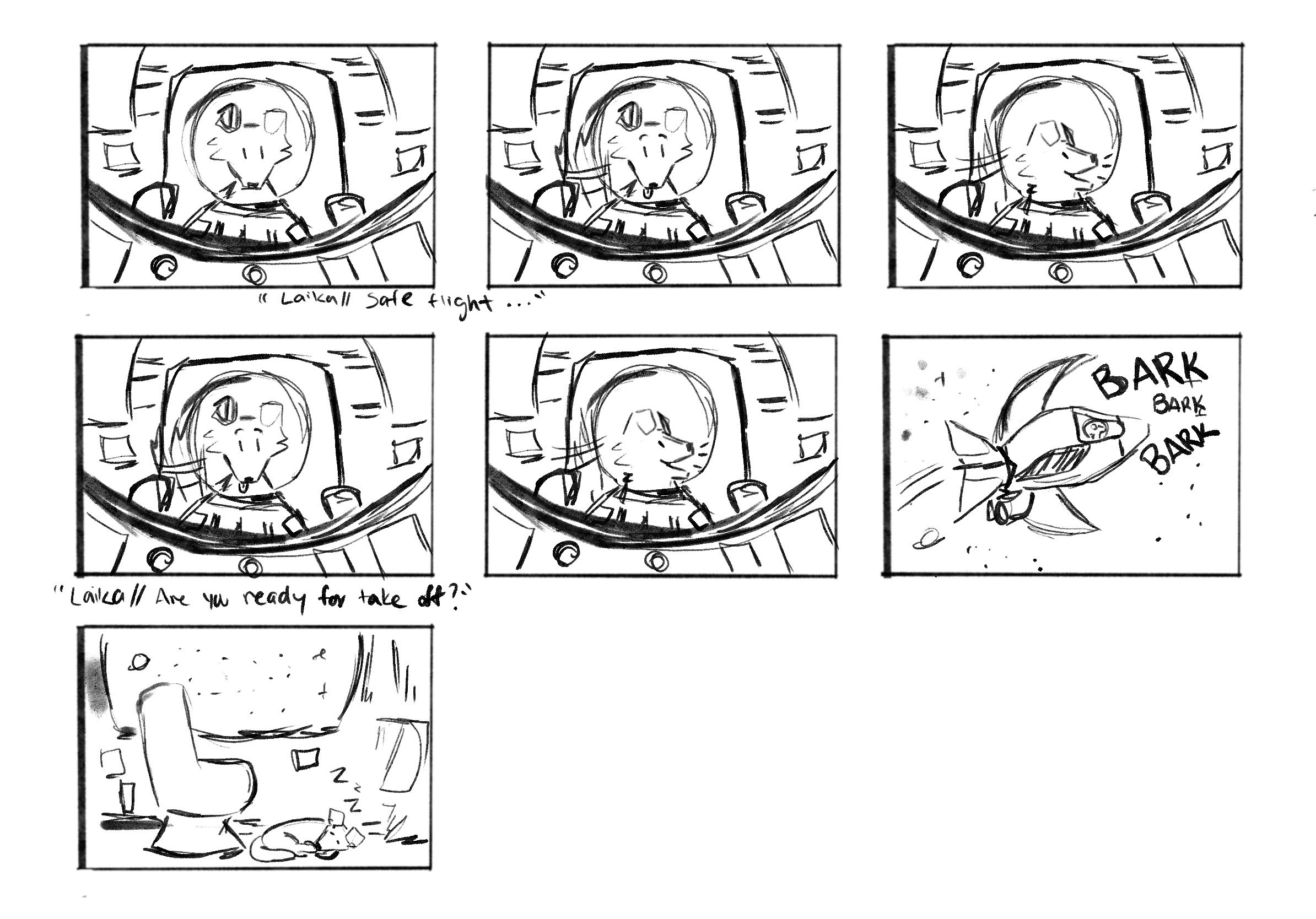 I started by drawing my dog doing random activities that I found amusing. A formal storyboard was not used, and instead I just went straight to animating after my sketches.